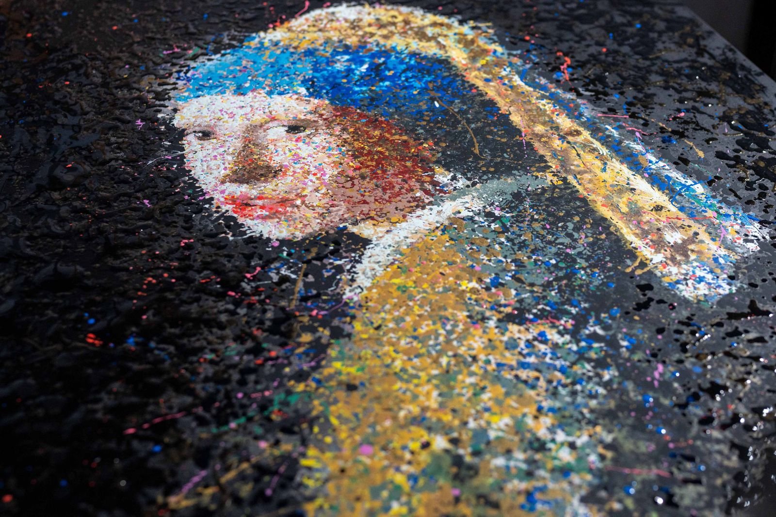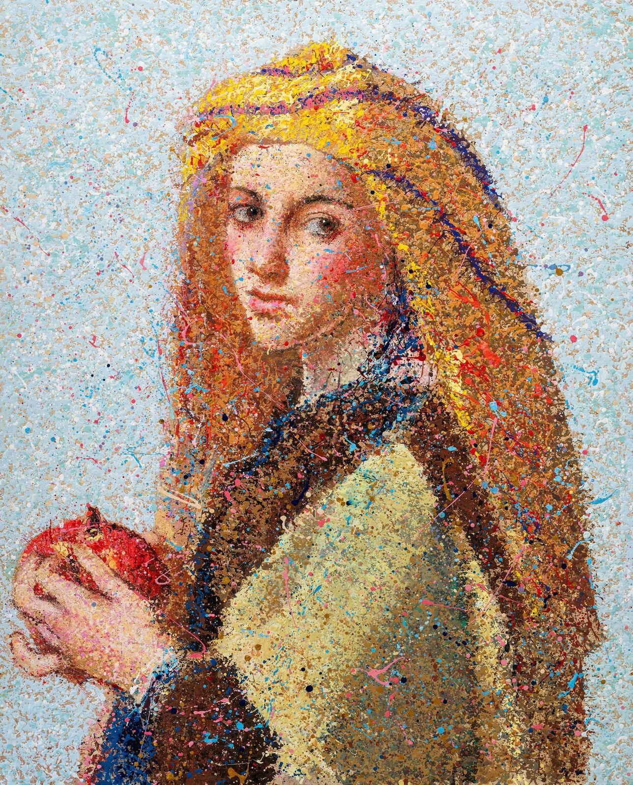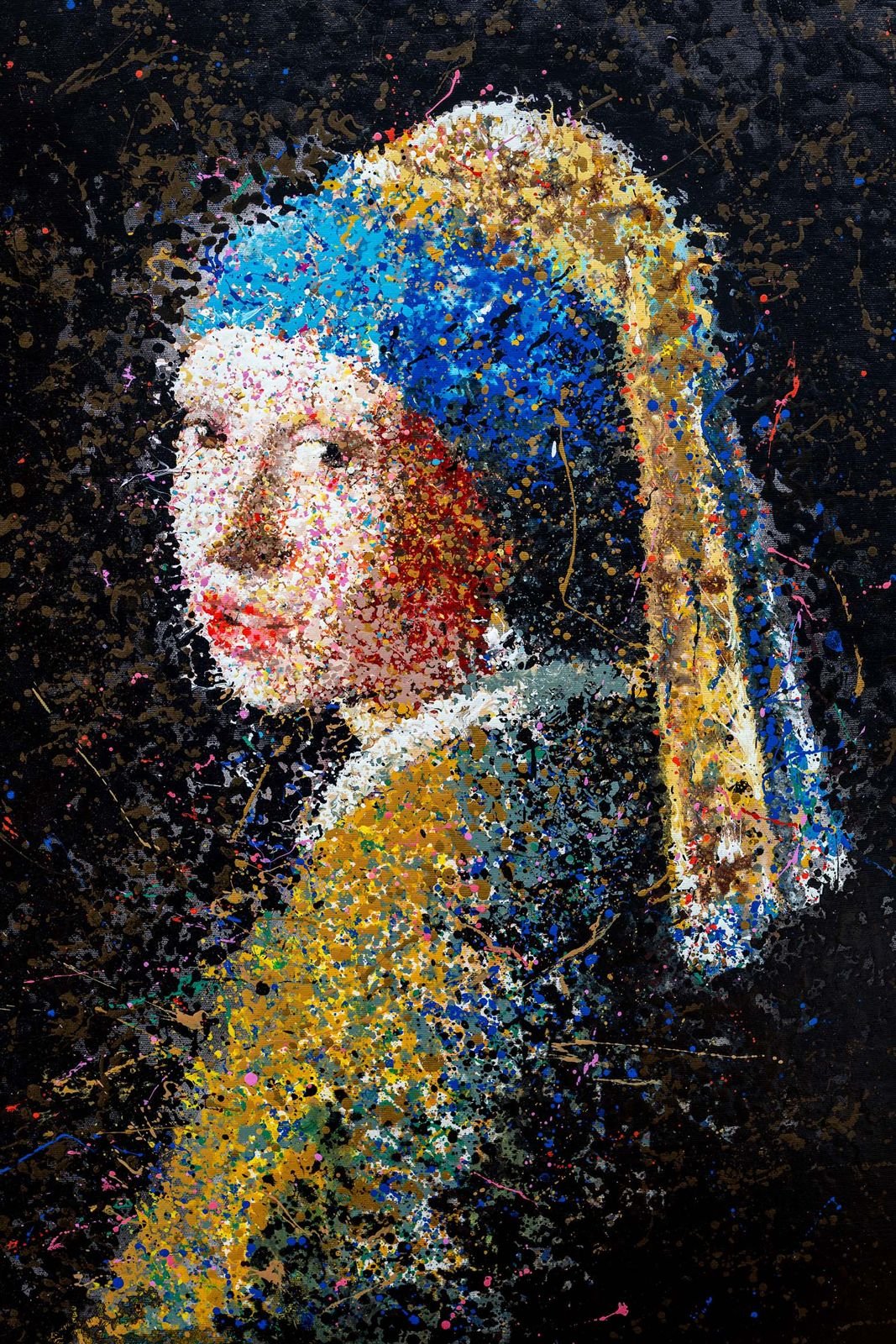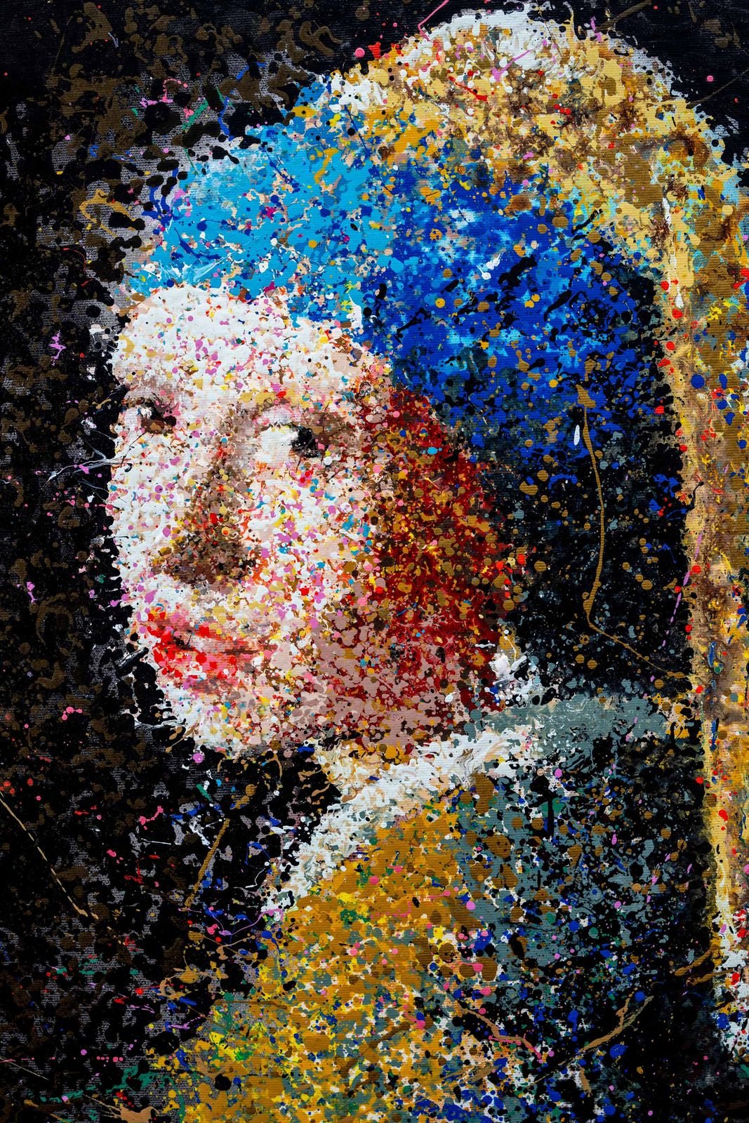 A new take on the classics – a fresh interpretation of iconic masterpieces In this series, well-known works of art from history are reimagined using the controlled drip technique. Inspired by Jackson Pollock's drip painting approach, I developed my own method to control the size, quantity and shape of the drops. This creates abstract compositions that retain the spirit of the original works, but at the same time translate it into a modern, dynamic aesthetic. These works are a tribute to the great masters of art history – seen through the lens of abstract expression.